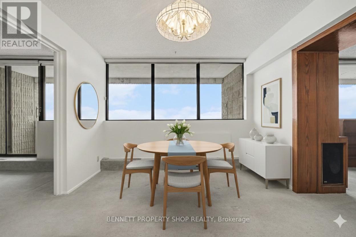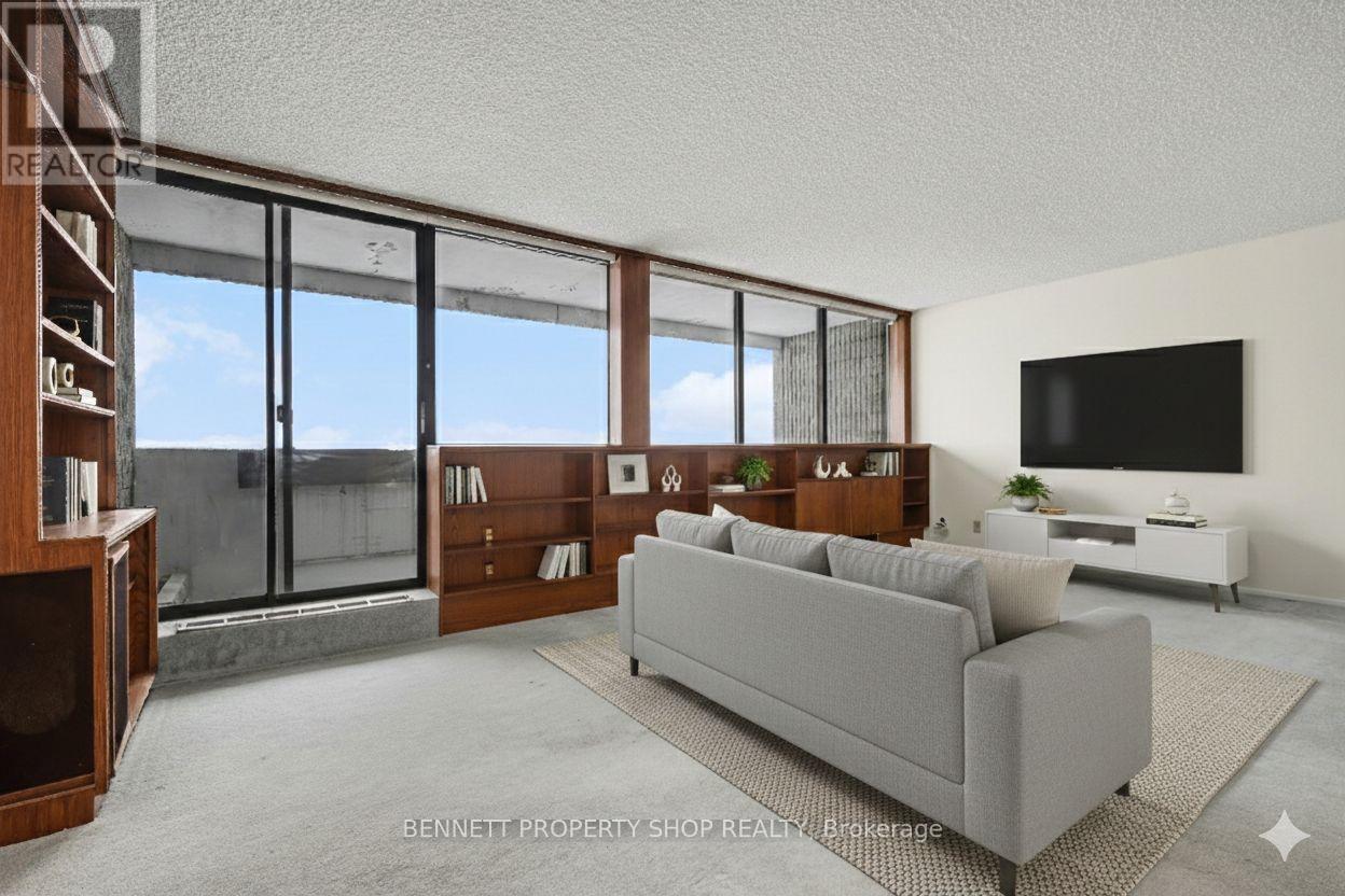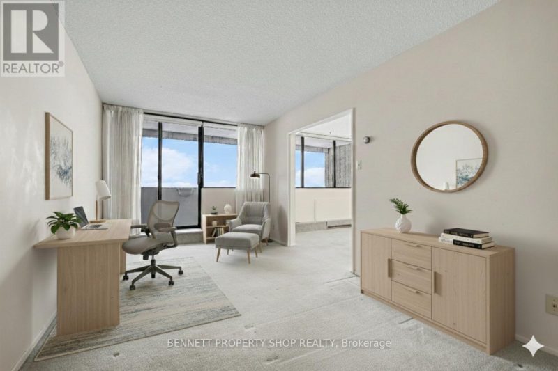 Expansive 1376 Sq Ft. Penthouse Unit in Strathmore Towers with sunny south-facing panoramic views from 3 covered Balconies! Welcome to all-inclusive resort living at Strathmore Towers – a wonderful condo community offering convenience, comfort and an unbeatable location. Live Large in this 2-bed, plus Den/office (which could easily be converted to a 3rd bedroom) 2 Full bath unit with 2 Parking Spaces. The Large welcoming tiled foyer invites you in and draws your eye to a spacious living – dining area with built-in wall cabinetry, and wall-to-wall windows leading to 1 of 3 unparalled outdoor covered balcony spaces. Sip a morning coffee or enjoy a cocktail to end the day. The generously sized kitchen boasts pantry, endless storage and features a separate insuite Laundry room with a generous storage area. The oversized primary bedroom offers a private balcony and an ensuite with generous closet space. Two parkade-covered parking spaces with inside entry and a storage locker are included. This is an unbeatable location. Walk to South Keys amenities (South Keys LRT Station, groceries, banking, cinemas, shopping, restaurants). Just a short drive or LRT Ride directly to the airportand a Quick LRT ride downtown or to Carleton University and Ottawa U. Superb amenities include an outdoor heated Pool, Sauna, Party Room, workshop, guest suites and Billiards Games room. Condo Fee includes: Amenities, Building Insurance, HEAT, HYDRO, WATER. There is no need to compromise on space. Come view this home and truly appreciate bright, spacious living. Main area freshly painted and New Luxury vinly flooring in the kitchen 2025. Parkay flooring under carpeted areas.