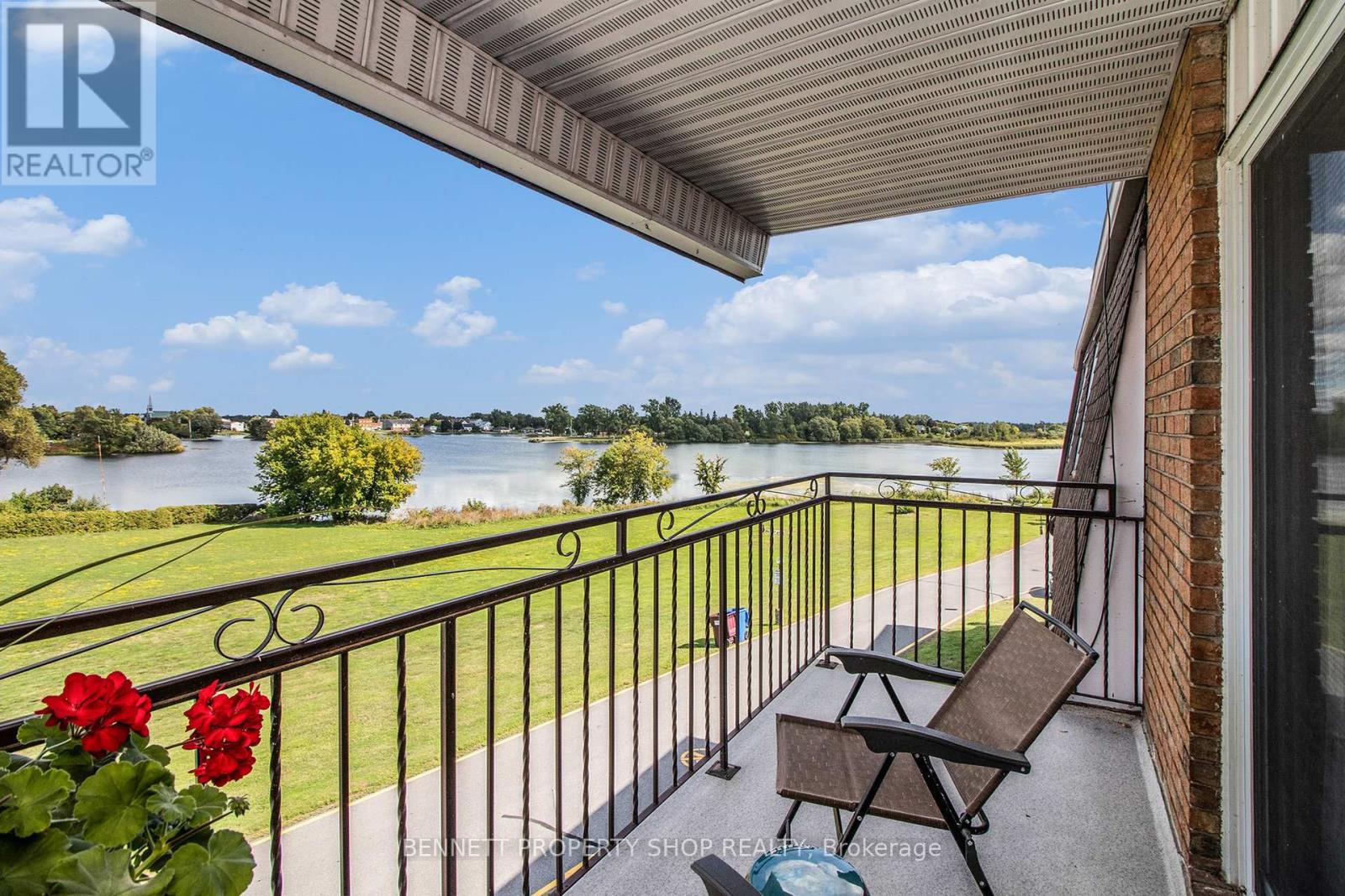 Move-In Ready 2-Bed Condo with Lake View! Welcome to 220 Glengarry Condos. This bright turnkey apartment features open plan living/dining area and a modern kitchen with stainless steel appliances, tile flooring and plenty of cupboard & counter space. The bathroom has white fixtures and tiled shower walls for a clean, modern look. 2 good sized bedrooms with large closets. Enjoy scenic balcony views of Mill Pond and Alexandria Island Park from your private balcony. The condo common areas include the parklike grounds and water access with a small dock – perfect for kayaking, canoeing or relaxing by the lake. Located just steps from Glengarry Memorial Hospital, this is an ideal home for medical professionals or anyone seeking a low-maintenance lifestyle close to work and nature.
