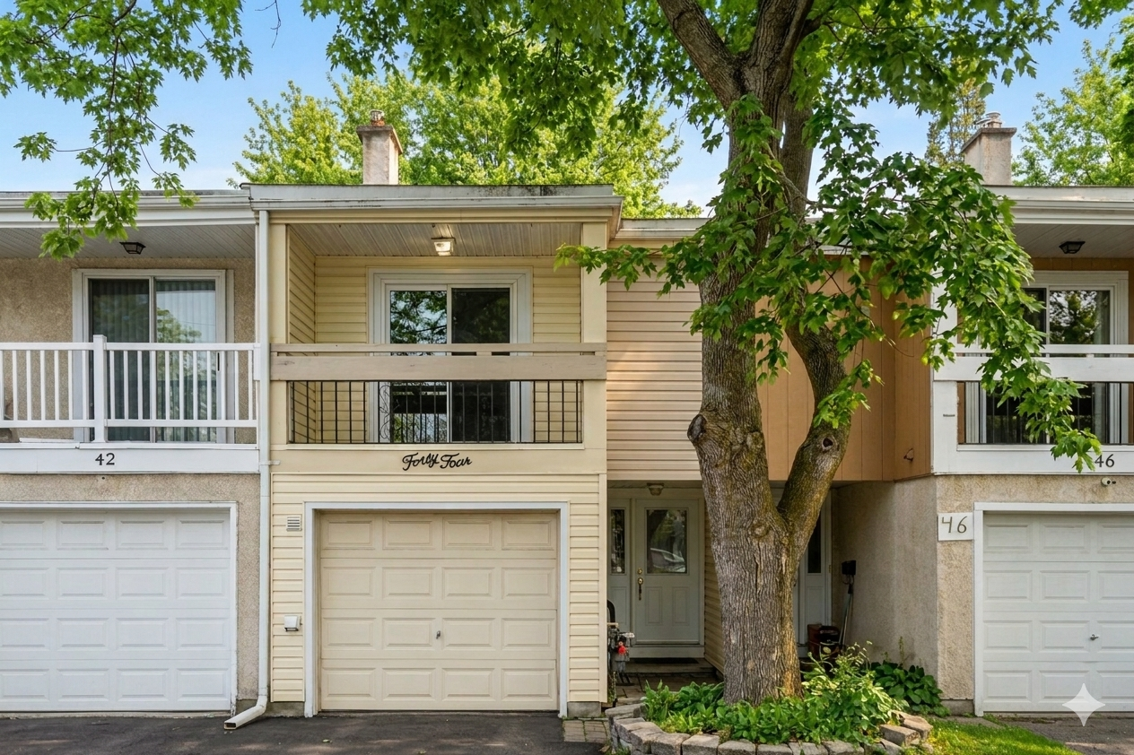 Perfect starter home in a well established, family friendly community. This well maintained freehold 3 bedroom, 2 bathroom townhome offers comfort, thoughtful updates, and true move in ready appeal. The bright main level features pot lights added in 2021, creating a warm and inviting living space. Enjoy peace of mind with a gas furnace installed in 2014 that has been professionally serviced annually, along with a roof replacement including flat roof and shingles completed in 2015.Outdoor living is easy with a new deck and updated siding completed in 2021, ideal for summer evenings. Living room windows were replaced in 2023 for improved energy efficiency. Additional recent improvements include a new washer, garage door opener, and furnace serviced in 2024, followed by a refreshed kitchen in 2025 with new countertops and cupboard doors. New stove (2025), as well as new living room flooring. Ideally located with quick access to Highway 417, offering an easy commute to Kanata and downtown, and close to shopping, parks, schools, and transit. Convenient proximity to major federal and tech employment hubs along the Moodie Drive and Carling Avenue corridor, including the Department of National Defence, approximately a 5 to 10 minute drive away, adds to the appeal. Set on quiet street with mature trees and a strong sense of community, this is an excellent opportunity for first time buyers or those looking to settle into a welcoming neighbourhood.