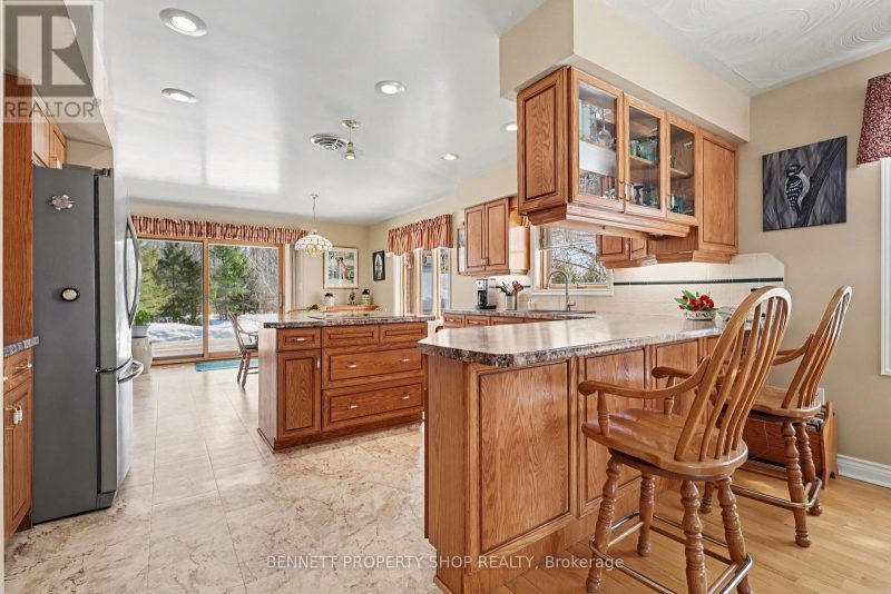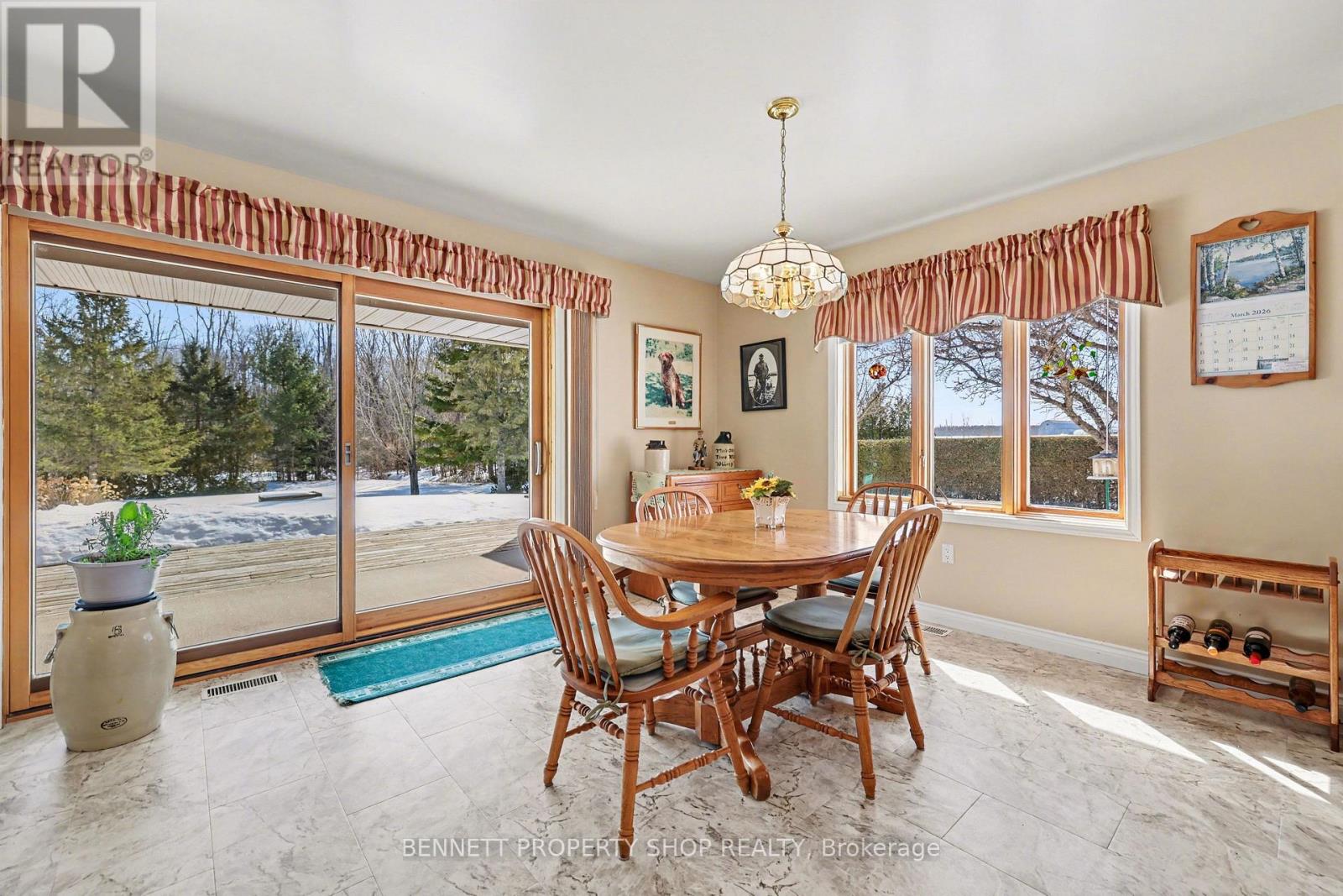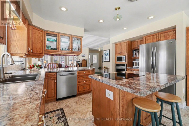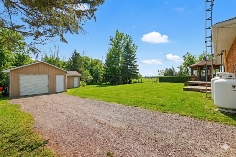 This custom-built 2+1 bedroom bungalow offers the perfect blend of comfort, privacy, and functionality. Nestled on a serene lot just minutes from Smiths Falls, 15 minutes to Carleton Place, 10 minutes to Perth and close to the Rideau Water System. This home is ideal for anyone seeking peaceful living with convenient access to nearby amenities. Main Features: 2+1 Bedroom, 2 full baths, double car garage, plus secondary detached garage with workshop, bright spacious living room featuring beautiful hardwood floors and large bay window, generous size kitchen with abundant counter space, ample cabinetry, stainless steel built-in appliance, an eating area overlooking the private backyard, and a handy office nook. The primary bedroom offers hardwood flooring, a walk-in closet and a 4-piece ensuite. Convenient main floor laundry. The spacious lower-level family room offers 3rd bedroom, a cozy wood fireplace, a spacious storage area and a cold room perfect for organization. Enjoy summer gatherings in your private backyard featuring a large deck. The enclosed gazebo adds another layer of outdoor enjoyment, offering a peaceful spot to unwind with a book or enjoy a glass of wine sheltered from the elements. Perfect place to call HOME!